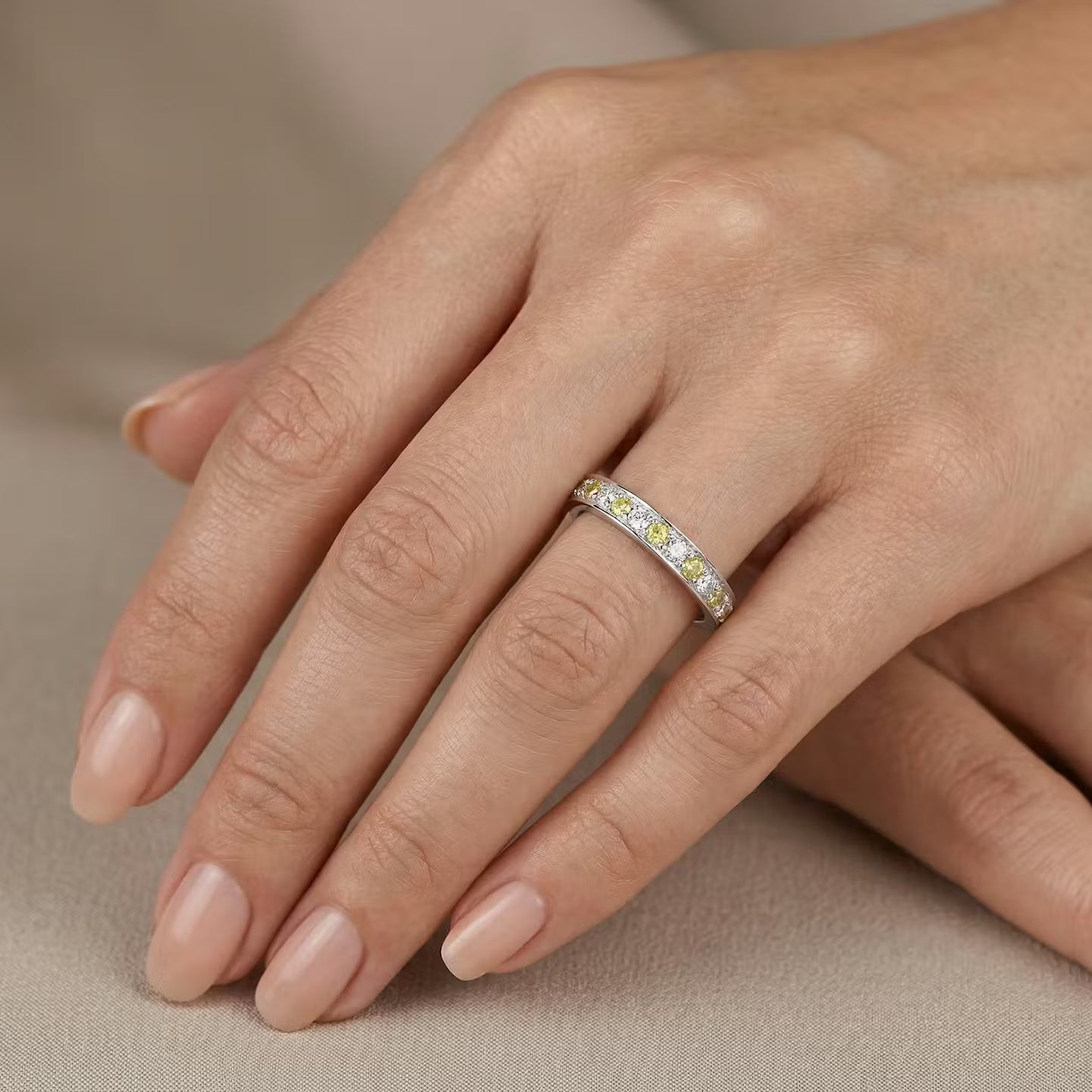 Fancy Vivid Yellow and White Diamond Band Ring