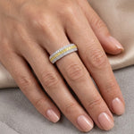 Fancy Intense Yellow and White Pave Diamond Milgrain Band Ring