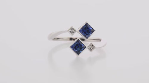 Blue Sapphire & Diamond Princess Two-stone Ring