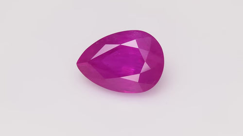 Questo eccezionale rubino birmano di 30,36 carati sfoggia una ammaliante tonalità rosso-rosata caratteristica delle migliori pietre della valle di Mogok. Tagliata a forma di pera, questa gemma certificata GRS mostra il colore profondo e saturo e la qualità luminosa che definisce i rubini di alta qualità. Un esemplare notevole per il collezionista esigente.