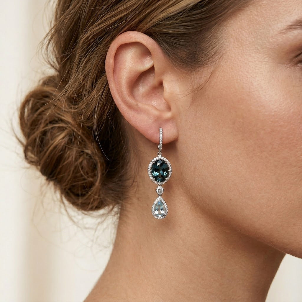 Tanzanite and Aquamarine Diamond Drop Earrings