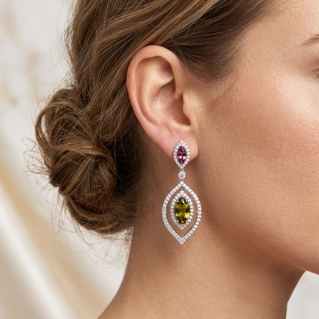 Orecchini pendenti con tsavorite, tormalina e diamanti