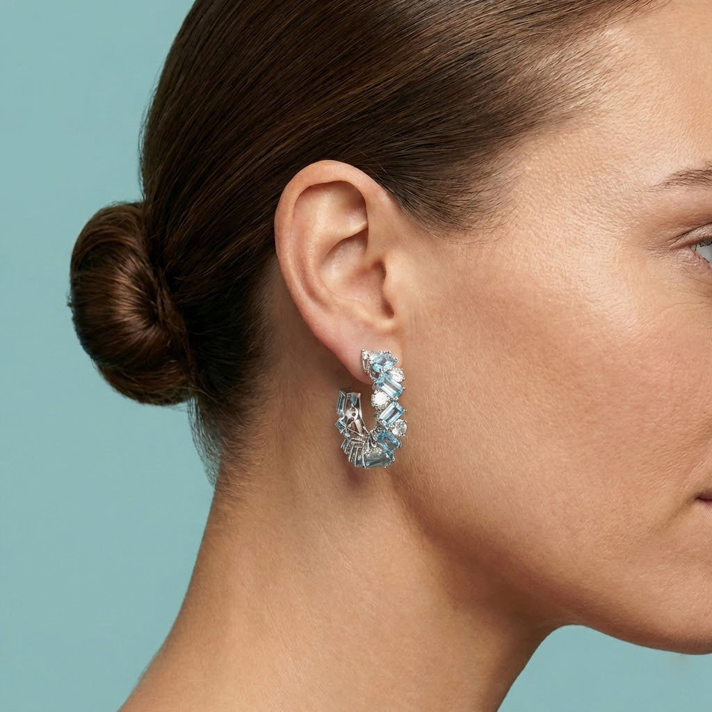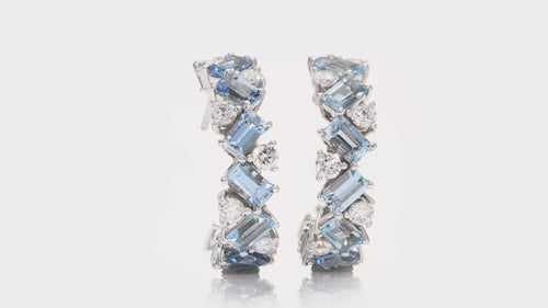 Aquamarine and Diamond Hoop Earrings