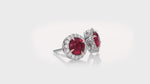 Round Red Ruby and Diamond Halo Earrings