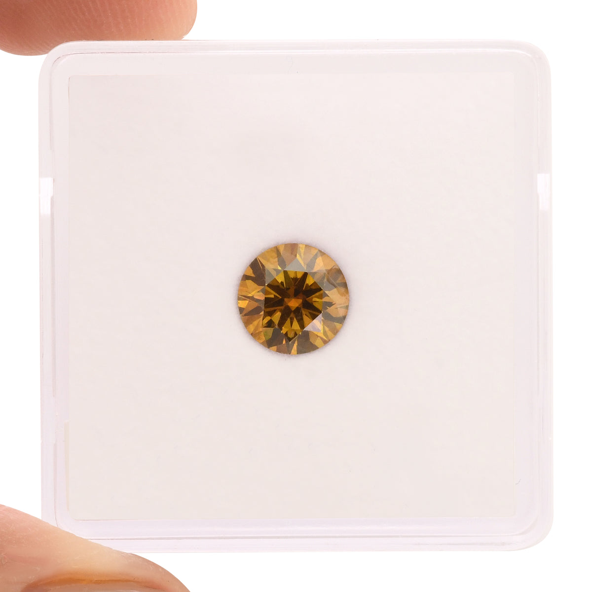 A striking 0.83-carat round diamond showcasing a rare Fancy Deep Brown Orange hue, certified SI1 by GIA. This distinctive gemstone combines warm, earthy tones with excellent brilliance, making it an exceptional choice for those seeking a unique and sophisticated diamond with character and depth.