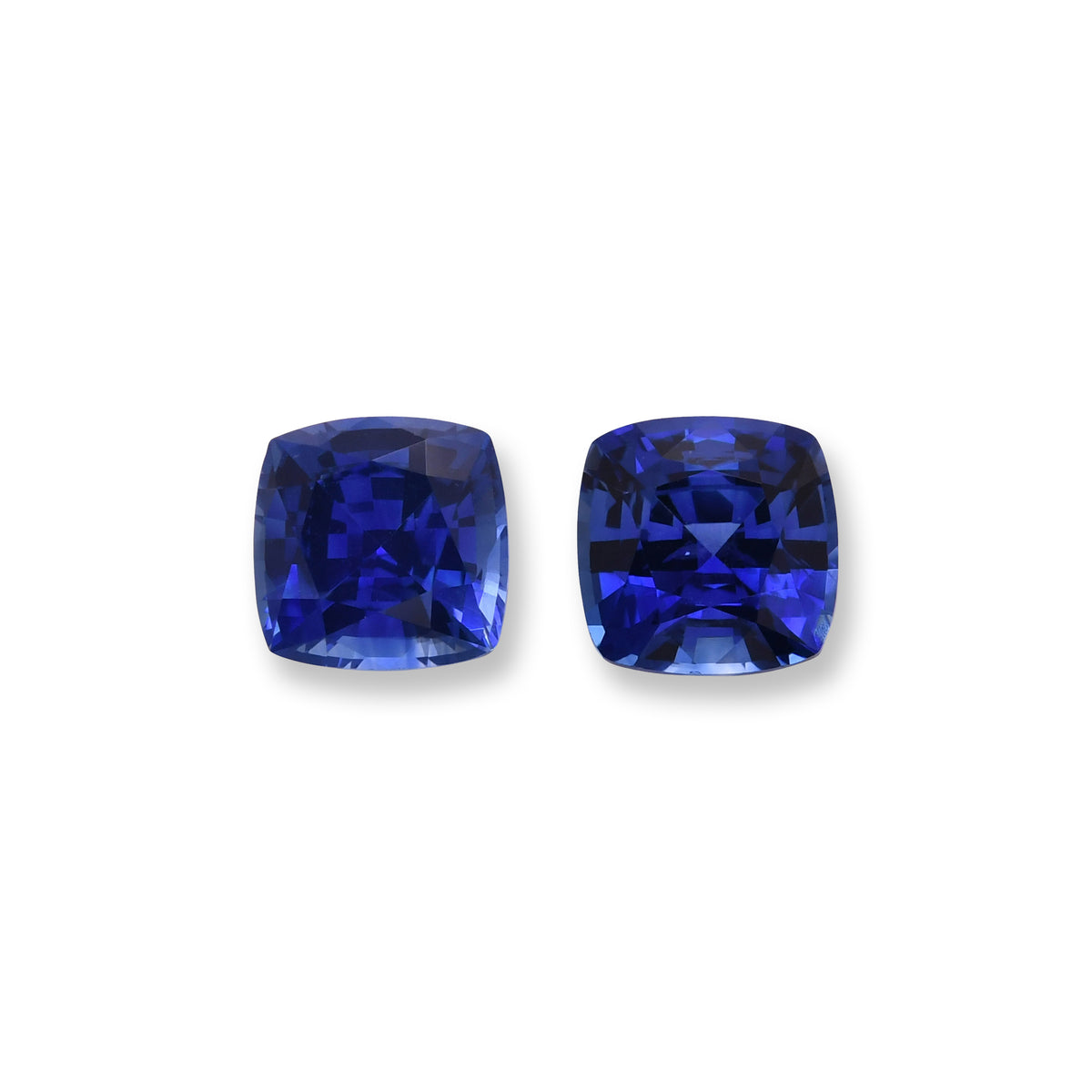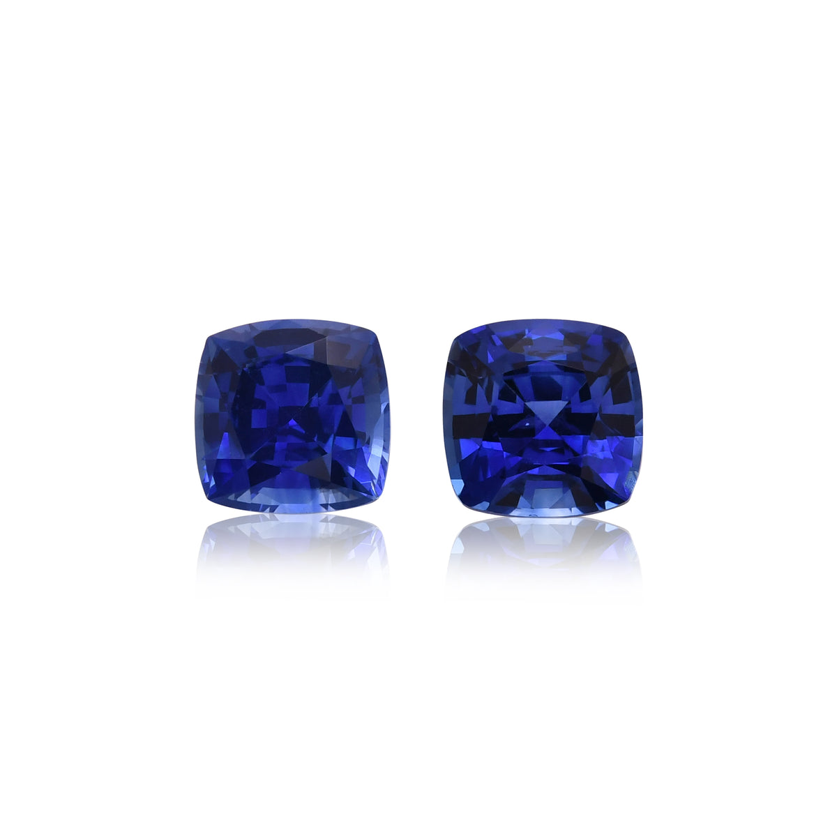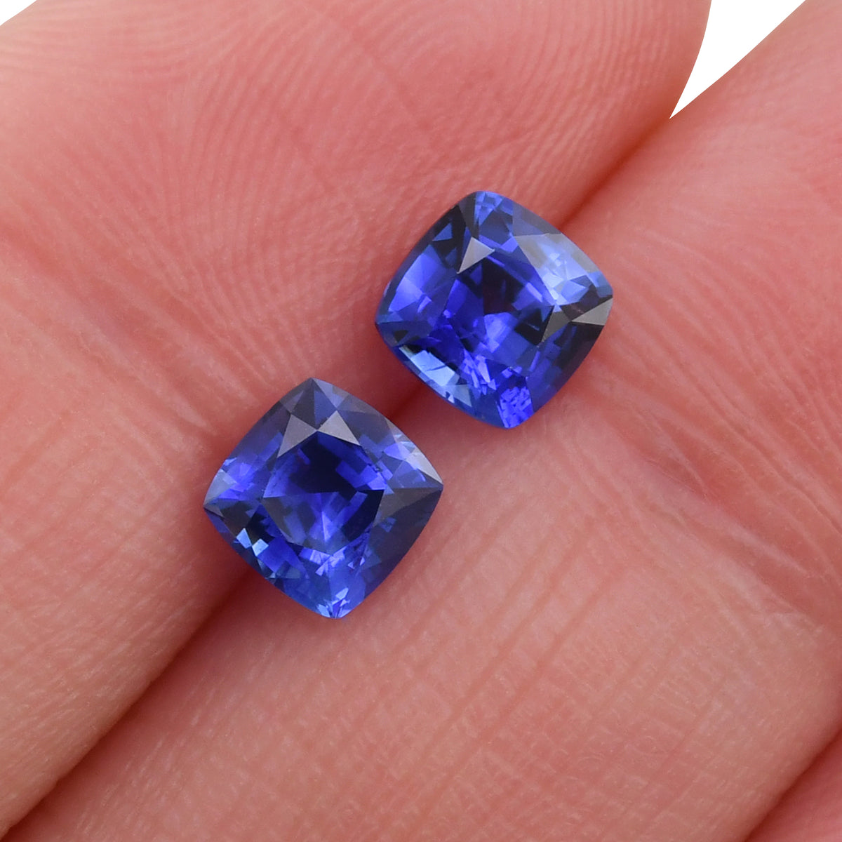 An impressive pair of blue, cushion shape Sapphire gemstones, total weight 1.90cts. The stones have a lovely shape and can be purchased as a loose pair or set as a pair of earrings in a Leibish setting style or custom design.