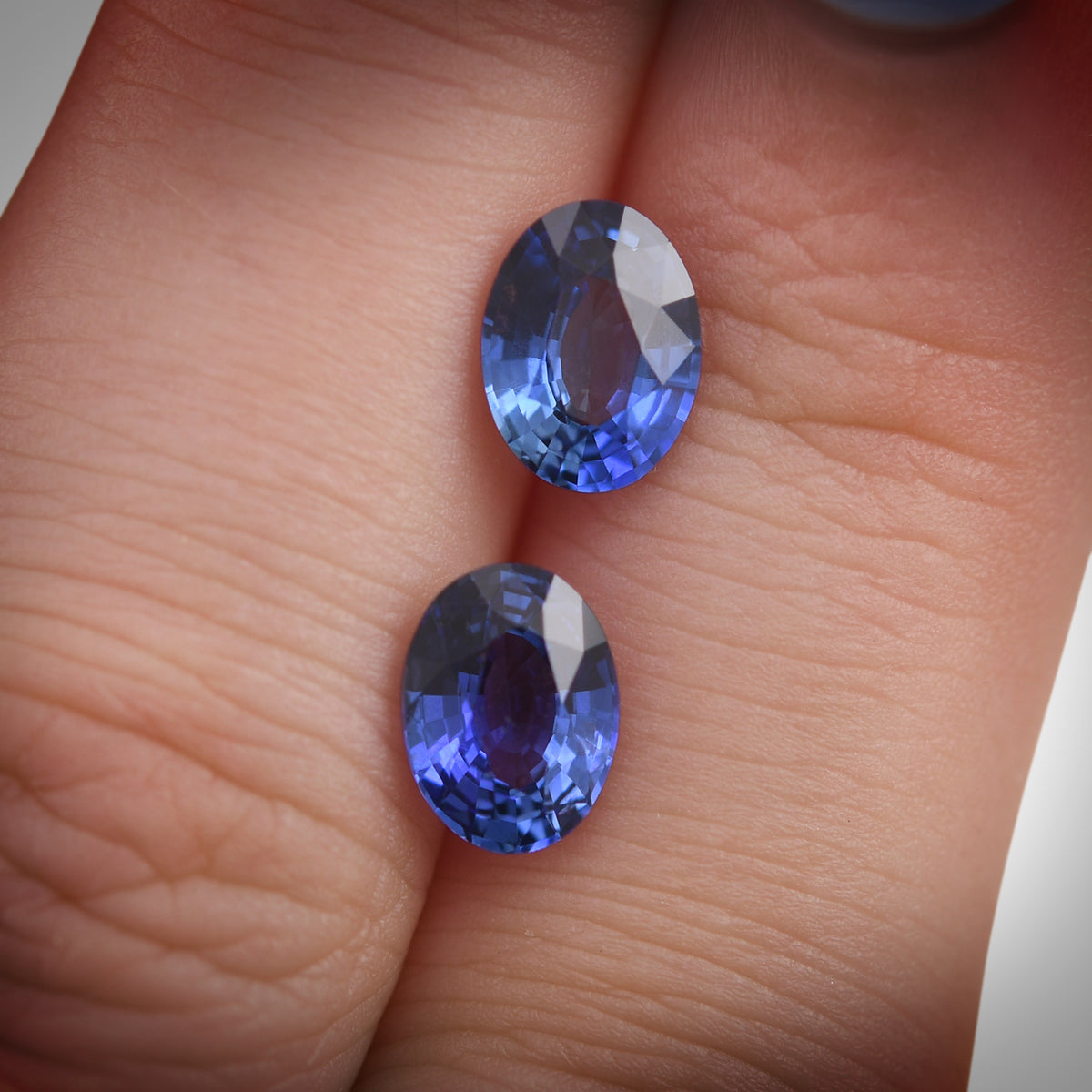 This exquisite pair of 2.86 carat blue Sri Lankan sapphires features beautifully proportioned oval cuts that radiate classic elegance. Sourced from Sri Lanka's prestigious gemstone region, these matched stones display rich, captivating blue tones ideal for fine jewelry creation.