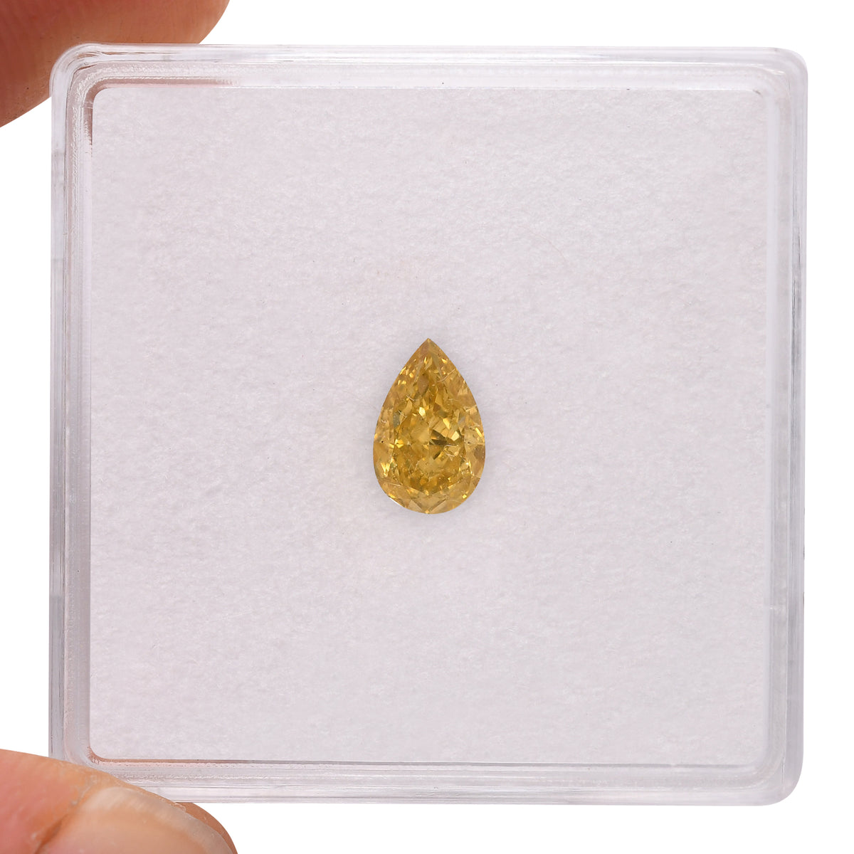 0.51 Carat Fancy Intense Yellow Pear Diamond SI1 GIA