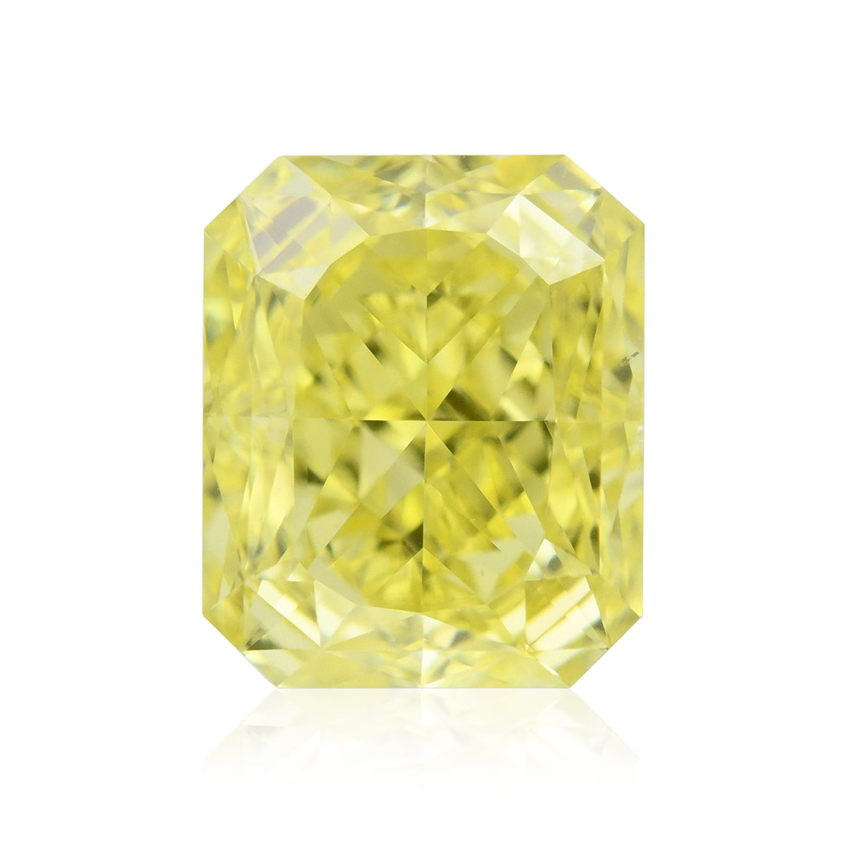 A 0.65 carat Fancy Intense Yellow Radiant Diamond with VS2 clarity, certified by GIA. Its vibrant color and clean appearance make it a beautiful, exceptional choice.