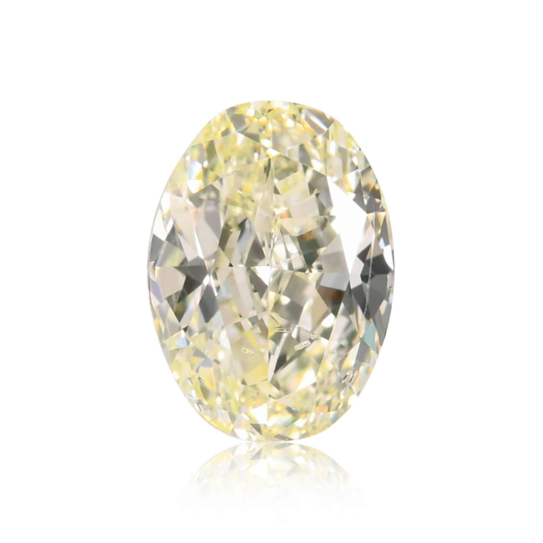 0.64 carat, Fancy Light Green Yellow, oval shape diamond with SI1 clarity, graded by GIA. A delightful yellow diamond with a delicate hue of lemon color. Clarity graded by our in house GIA GG Graduate Gemologist.
