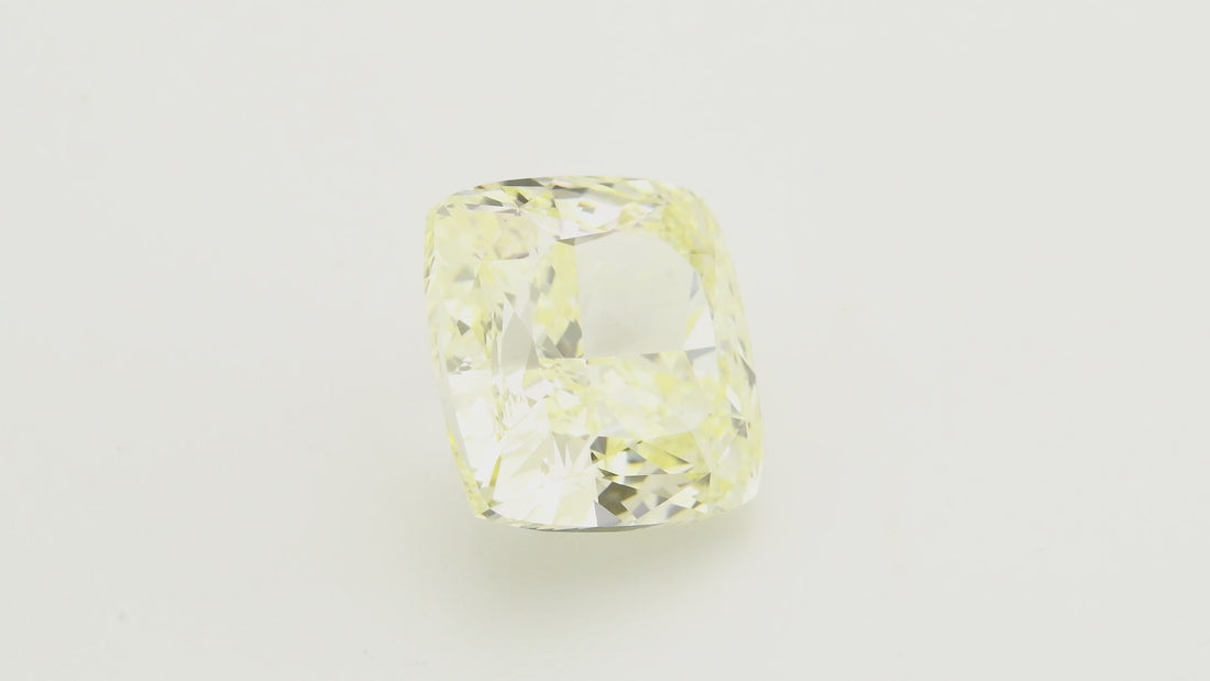 A stunning 5.38-carat Fancy Light Yellow cushion diamond with VS2 clarity and GIA certification. This radiant stone combines warm, golden hues with exceptional brilliance, making it an elegant choice for a distinctive engagement ring or fine jewelry piece.