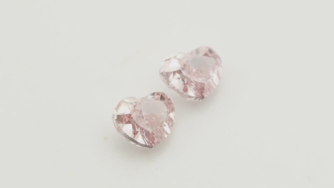 A beautiful pair of fancy pink, heart diamonds, total weight 0.51cts, with VS2 clarity, certified by GIA. The stones have an amazing sparkle and can be purchased as a loose pair or set as a pair of earrings in a Leibish setting style or custom design.