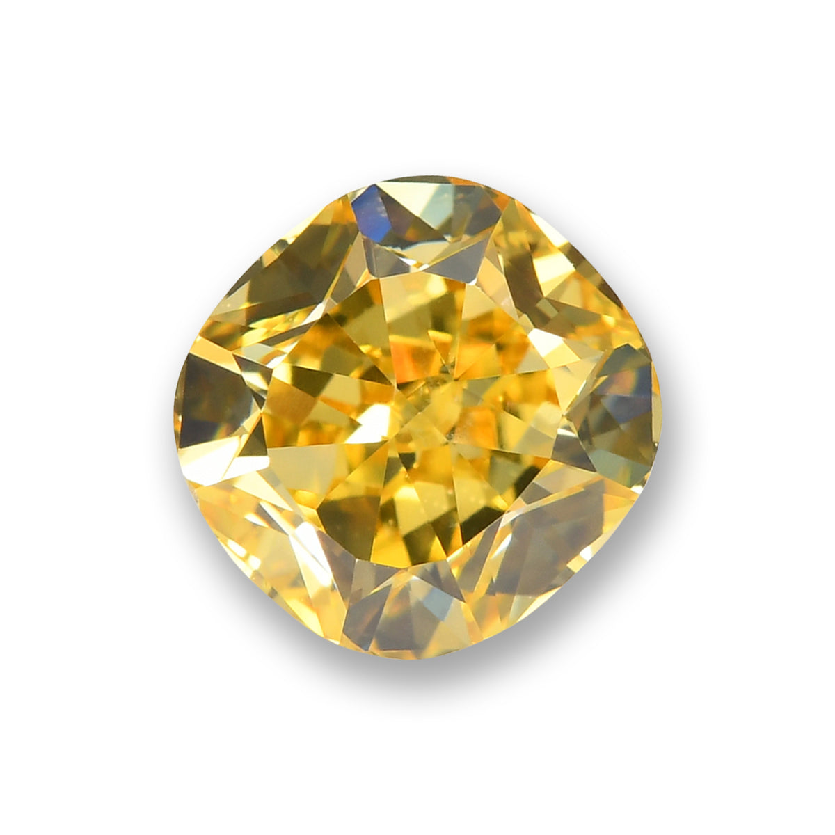 0.66 carat, Fancy Vivid Yellow, cushion diamond with SI1 clarity, graded by GIA. The stone has Very Good polish and Very Good symmetry.