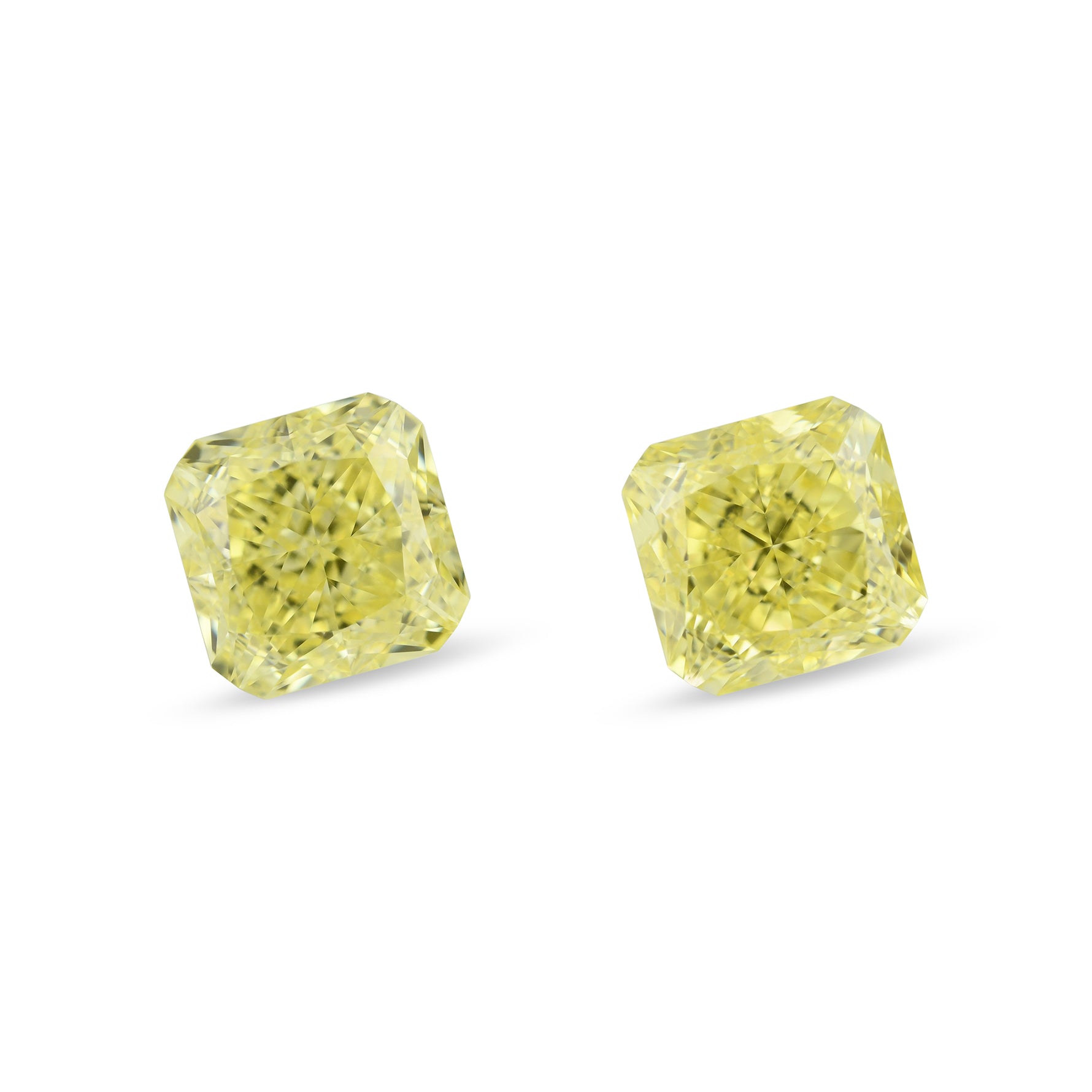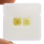 This distinguished pair of 2.29 carat Fancy Yellow Radiant diamonds boasts an excellent VVS2 clarity and is certified by GIA, ensuring authenticity and superior quality. They can be purchased as a loose pair or set as a pair of earrings in a Leibish setting style or custom design.