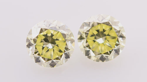 A splendid pair of fancy yellow, round shape diamonds, total weight 2.64cts, with SI2 clarity, certified by GIA. The stones face-up beautifully and can be purchased as a loose pair or set as a pair of earrings in a Leibish setting style or custom design.