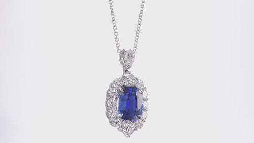 Royal Blue Sapphire Cushion Halo Diamond Pendant