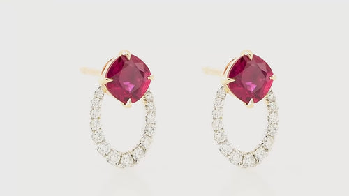 LEIBISH.Red Cushion Ruby and Diamond Earrings
