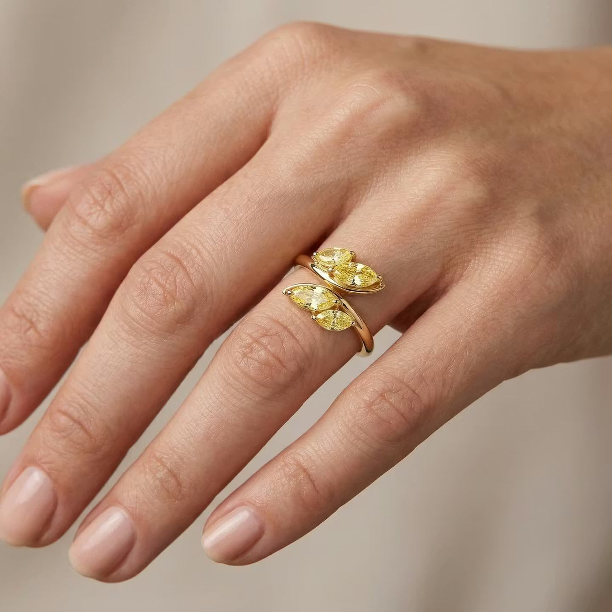 4 Stone Fancy Intense Yellow Marquise Crossover Ring