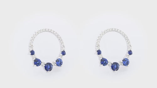 Grundpreis / proBeautiful earrings, featuring blue round sapphires with colorless round brilliant diamonds in an open pave circle configuration. Mounted in 18K white gold.