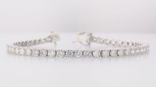 A classic diamond Tennis bracelet with 6cts+ collection color brilliants styled in a prong setting. The bracelet is mounted in 14K white gold.