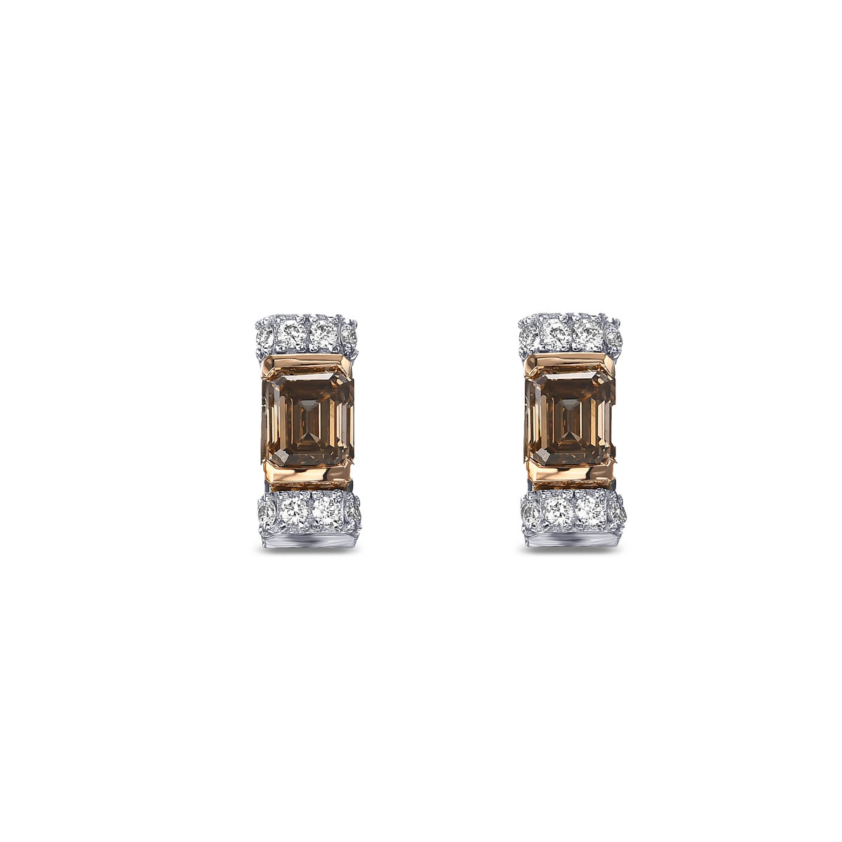 These refined stud earrings showcase the understated allure of fancy brown diamonds complemented by emerald-cut stones, a pairing that speaks to discerning taste. The clean geometric lines of the emerald cut enhance the stones' natural depth and clarity, while the warm brown tone adds subtle richness to any complexion. Designed for those who value restraint and authenticity, these earrings transition seamlessly from boardroom to evening, offering the kind of quiet luxury that requires no explanation. A timeless investment in personal style.