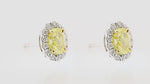 Grundpreis / proA classic pair of fancy yellow oval diamond halo earrings, featuring a perfect pair of diamonds weighing 1.00cts total weight and certified by GIA. The diamonds are accented by collection color side stones styled in an open pave halo and mounted in 18K white and yellow gold.