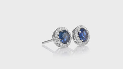 Round Blue Sapphire and Diamond Halo Earrings