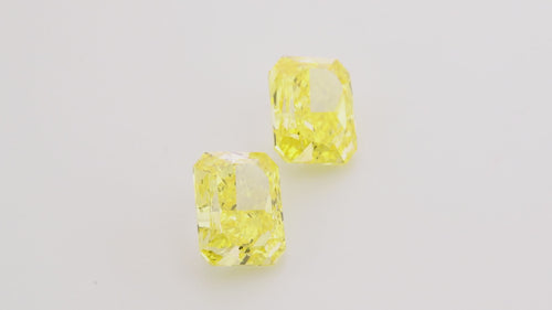 4.02 Carat Fancy Vivid Yellow Radiant Diamonds VS1 and VVS2 GIA Pair