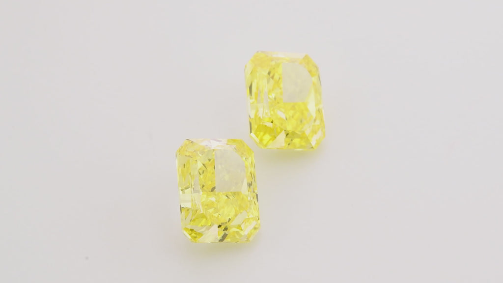 This exceptional pair of radiant-cut diamonds showcases the rare beauty of Fancy Vivid yellow, a color grade achieved by less than 1% of diamonds worldwide. The combined 4.02 carat weight is split between two stones graded VS1 and VVS2 for clarity, ensuring exceptional transparency and brilliance. Each diamond has been certified by the GIA, guaranteeing authenticity and quality.
