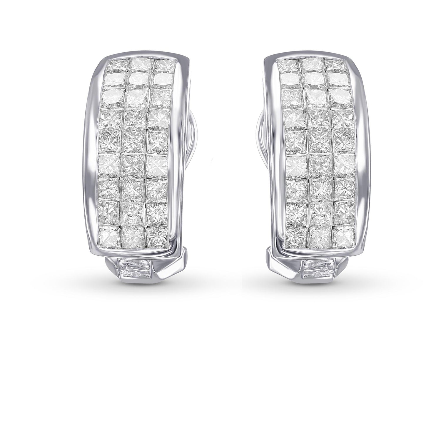 Grundpreis proA lovely pair of white diamond princess cut hoop earrings, with collection color diamonds set in a Channel setting and mounted in 18K white gold. Color and clarity graded by our in house GIA GG Graduate Gemologist.