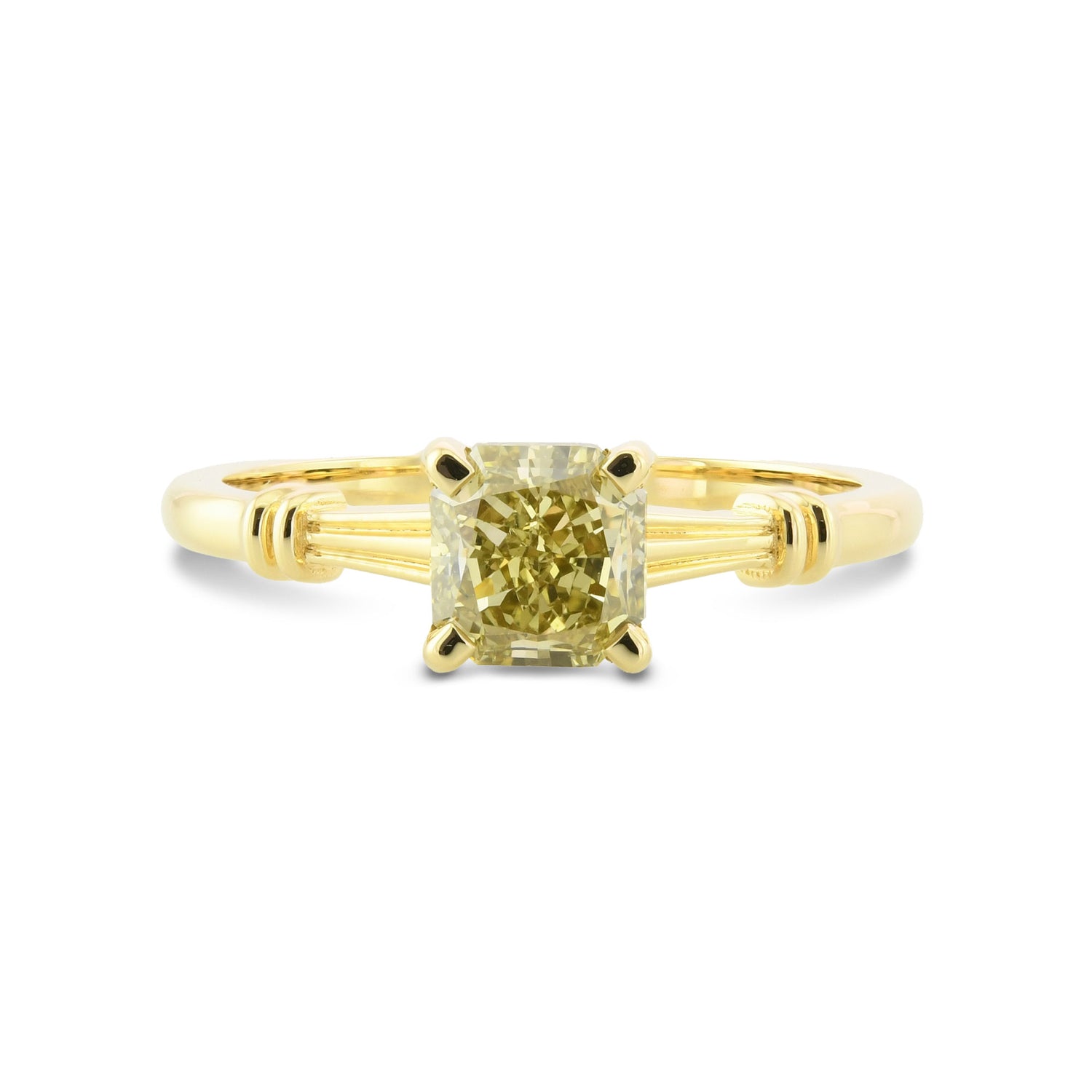 Fancy Light Yellow Radiant Diamond Side-stone Ring
