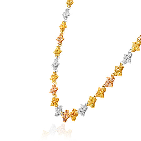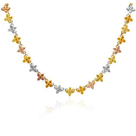 Grundpreis proA stunning Fancy Vivid Yellowish Orange radiant diamond pin and pendant, with a center stone weighing 0.50cts and certified by GIA. The pendant features an open pave halo accenting the center stone, and collection color pears and brilliants, styled in an open pave floral halo motif. This beautiful piece of jewellery, which doubles up as a pin, is mounted in 18K white and rose gold.