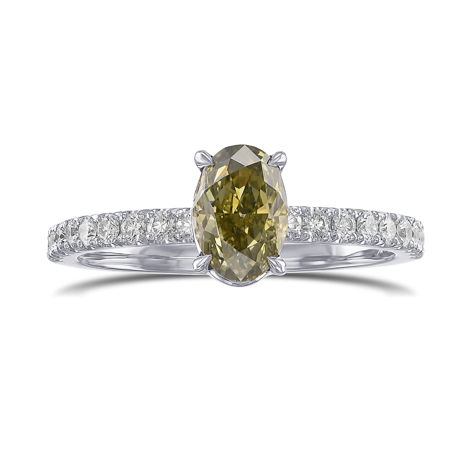Grundpreis proA beautiful fancy yellow cushion pave side-stone diamond ring, with a center stone weighing 1.00cts and certified by GIA. The ring features collection color brilliants styled in closed pave bow setting, and is mounted in 18K white and yellow gold.
