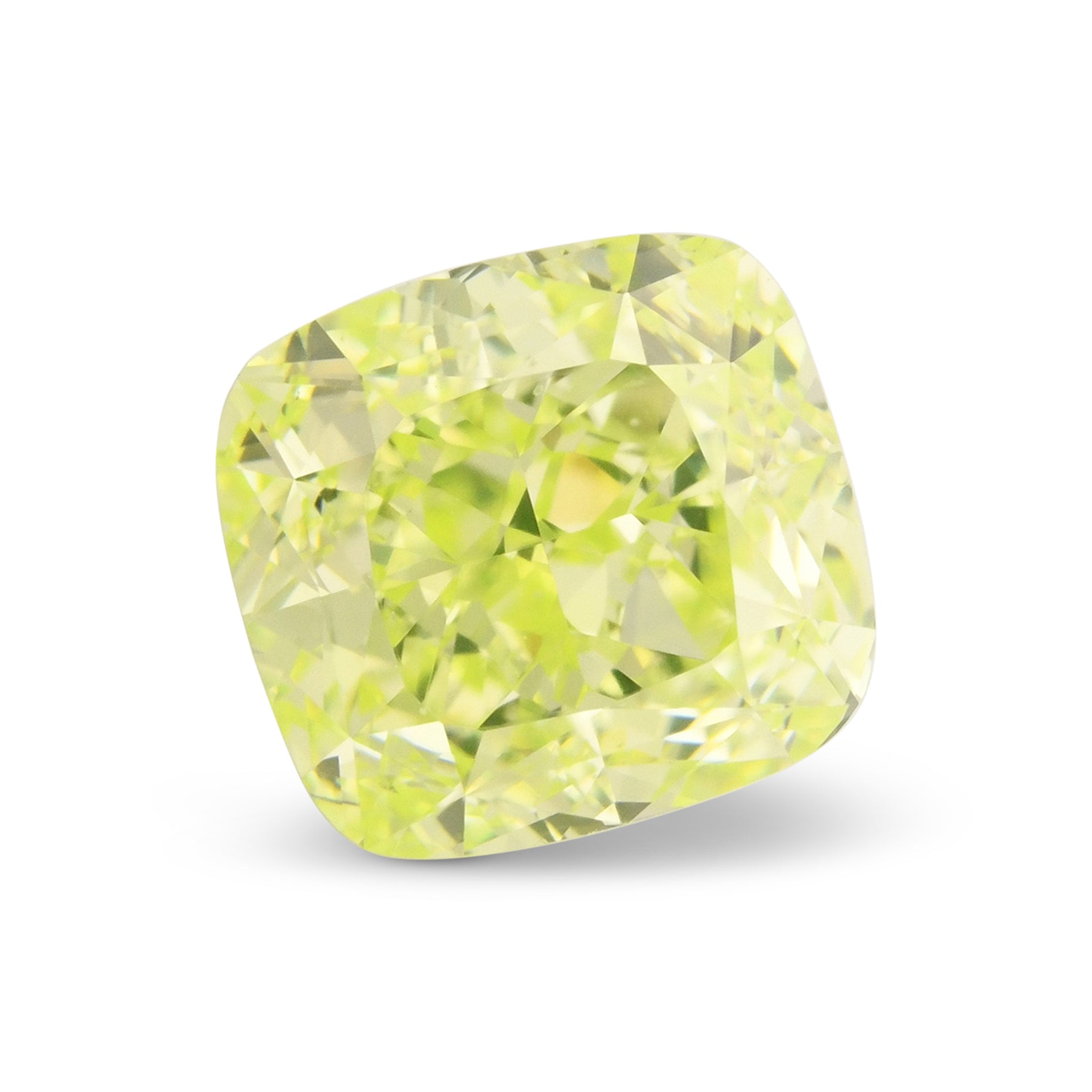 This stunning 1.34-carat cushion diamond radiates a vibrant citrus-inspired yellowish green that's both rare and captivating. GIA-certified VS2 clarity ensures exceptional quality and authenticity. An extraordinary choice for those seeking a distinctive, investment-worthy gemstone.
