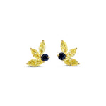 Blue Sapphire and Fancy Intense Yellow Marquise Couture Diamond Earrings
