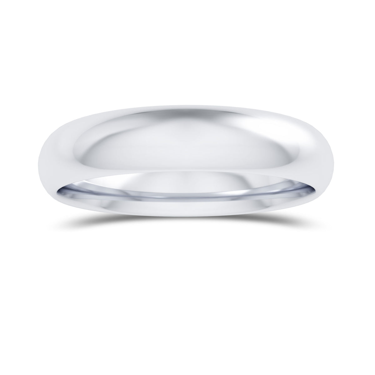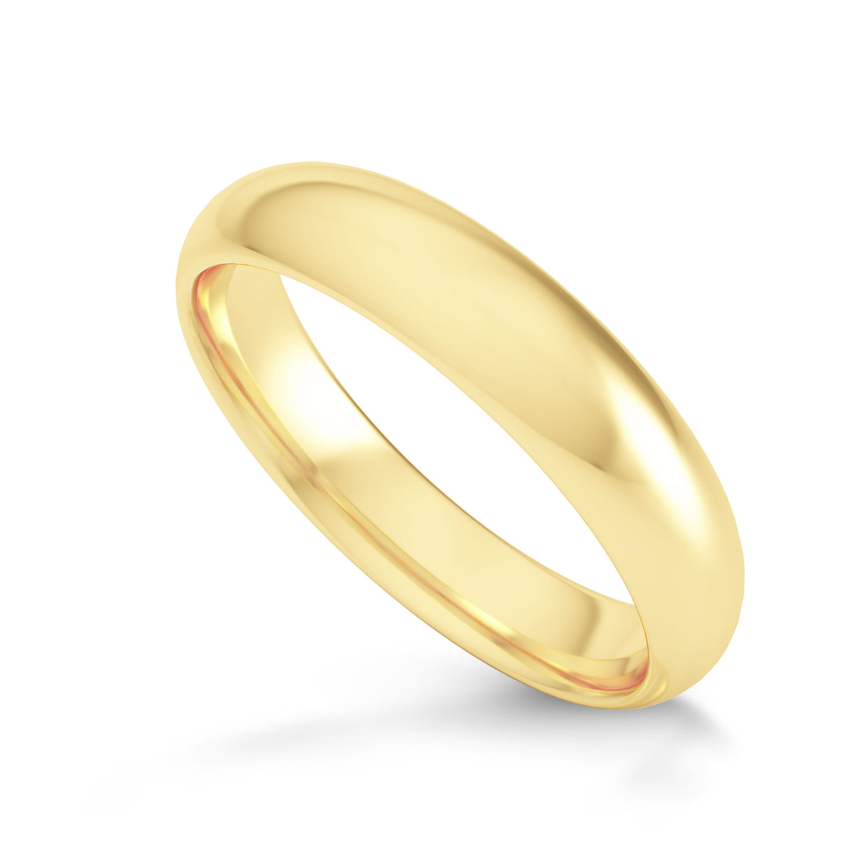 Polished metal band ring, with internal comfort fit and external domed profile, available in gold or platinum, 4MM wide.