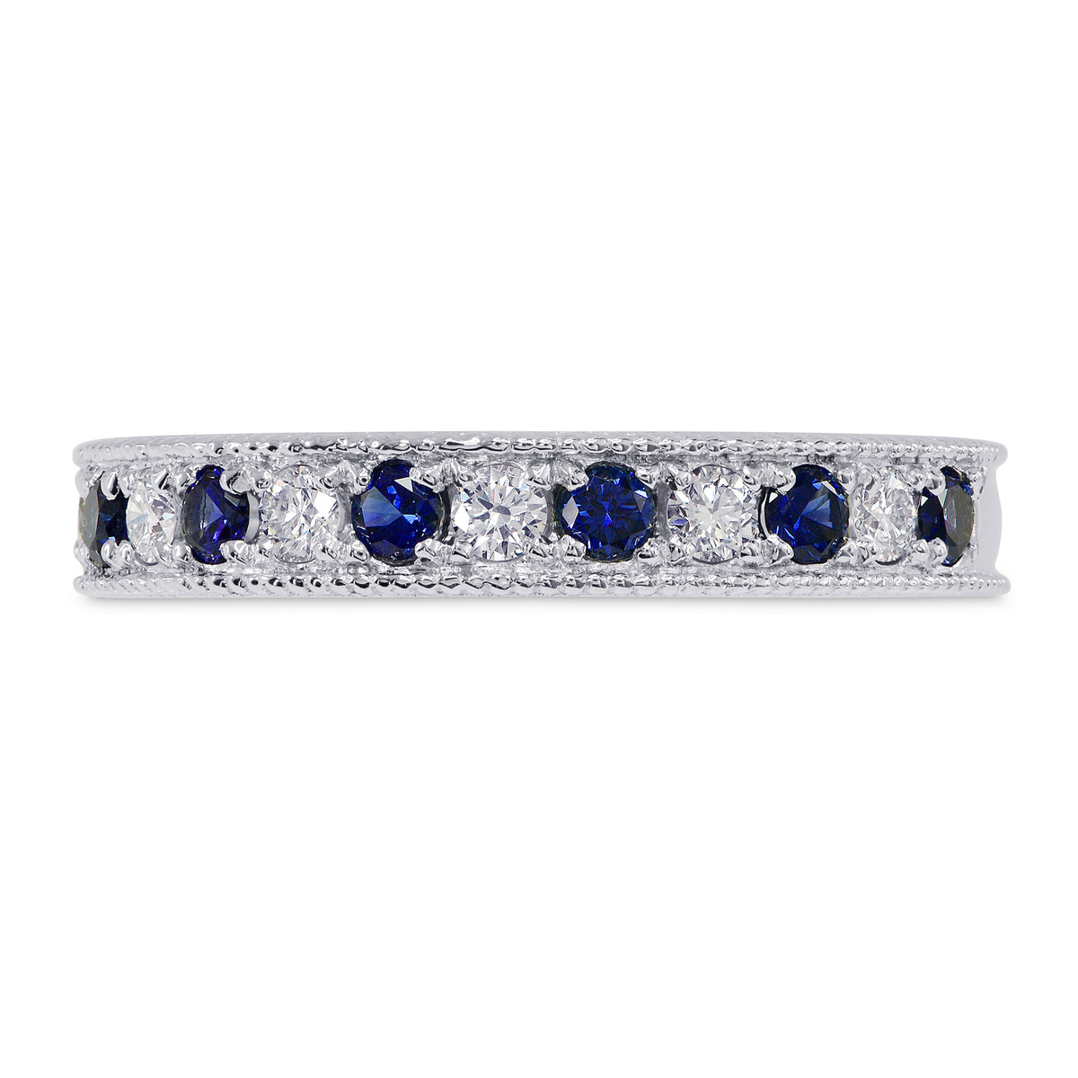 Milgrain Sapphire and Diamond Band Ring