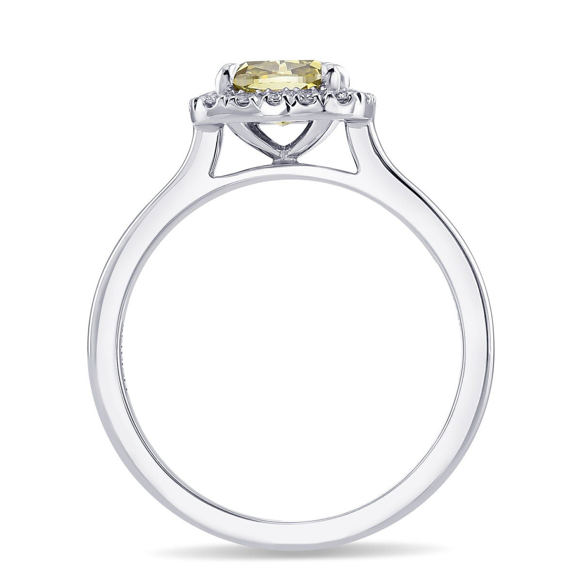 Grundpreis / proThis sophisticated Chameleon Cushion Diamond Halo Ring features a 1.07-carat GIA-certified center diamond, surrounded by an open pave halo of color brilliants, all set in 18K white gold.