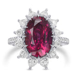 Extraordinary Oval Ruby and Diamond Halo Side-stone Ring AGL GRS