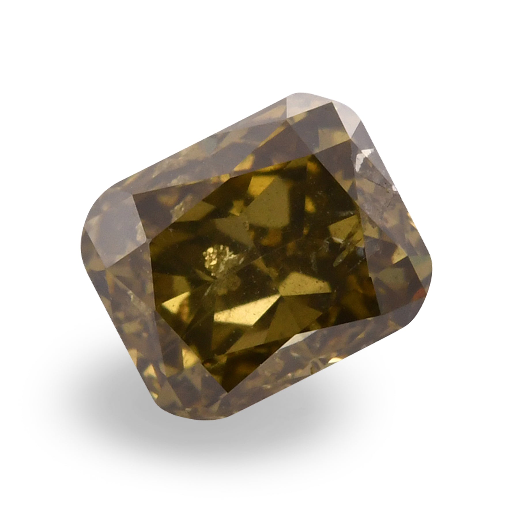 0.73 Carat Fancy Dark Brown Greenish Yellow Cushion Diamond I1 GIA