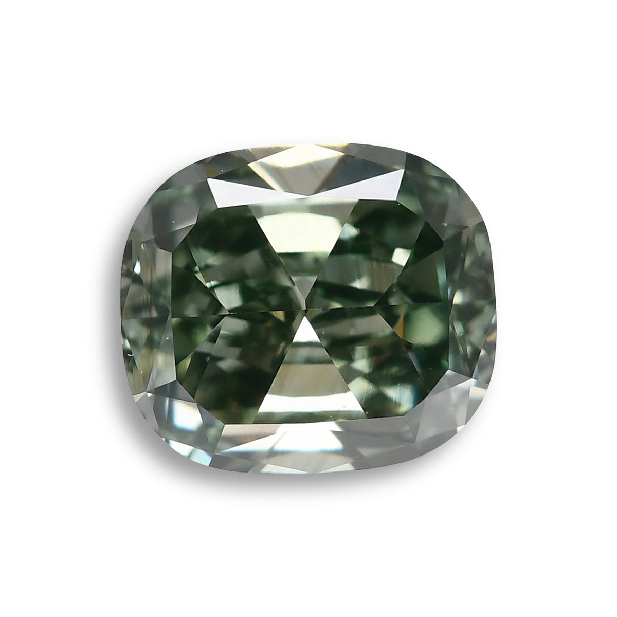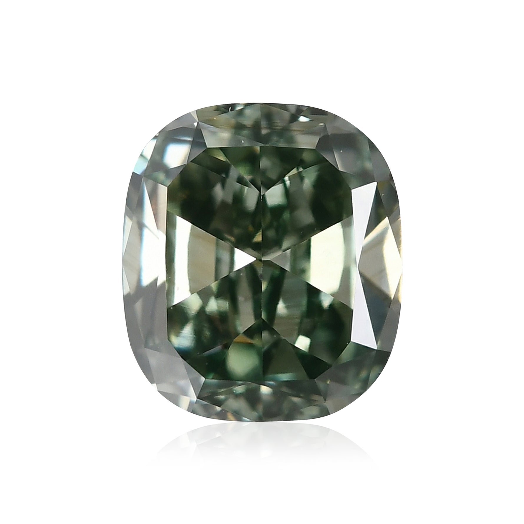 1.04 carat, Fancy Deep Green, Cushion shape Diamond with VS2 clarity, graded by GIA.� A beautiful green diamond with a captivating leaf green color. The stone has Very Good polish and Good symmetry.