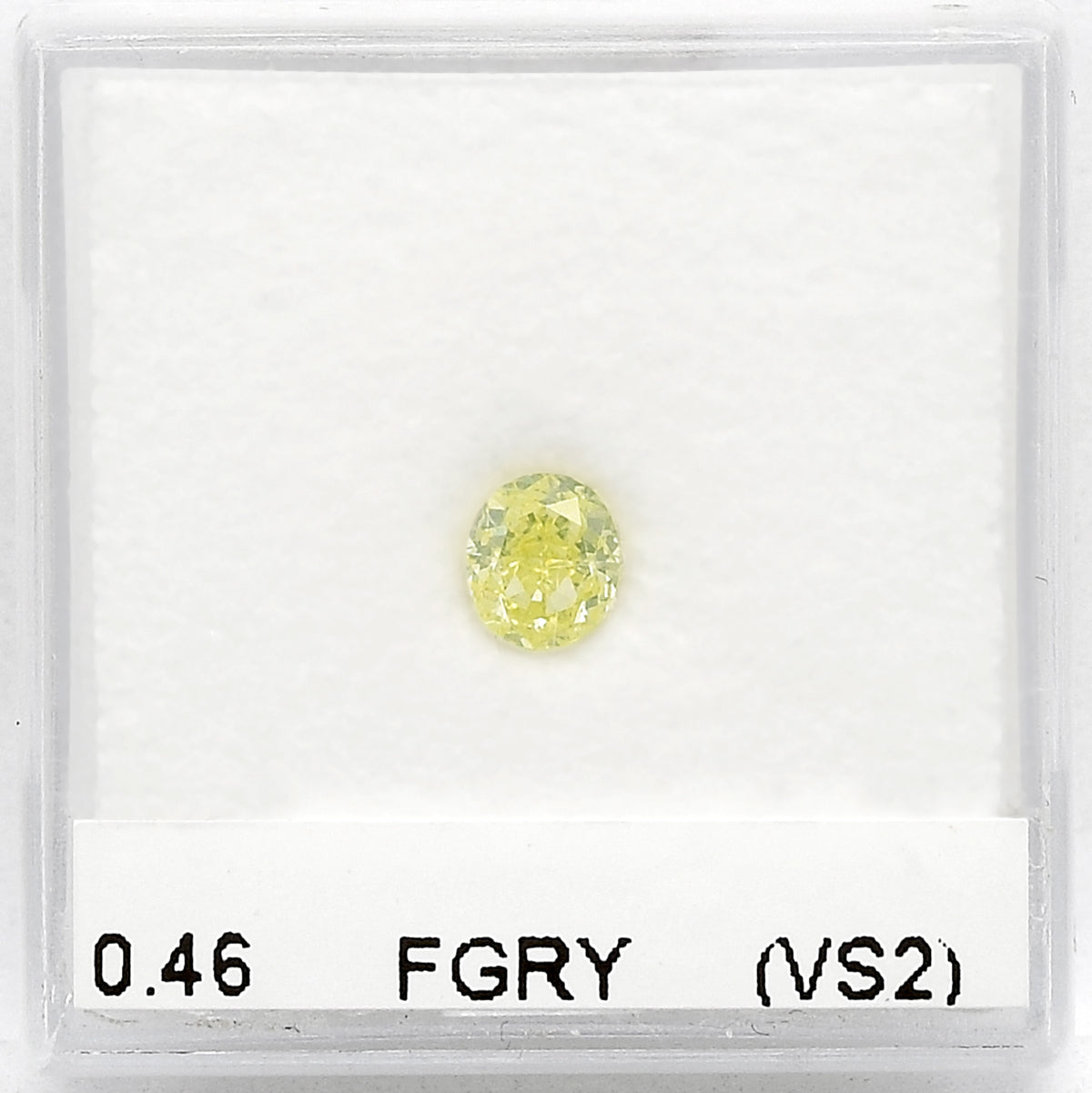 0.46 carat, Fancy Green Yellow, Oval Diamond, graded by GIA, VS2 clarity. A delightful Yellow Diamond with a touch of Mint green color. Clarity graded by our in house GIA GG Graduate Gemologist.