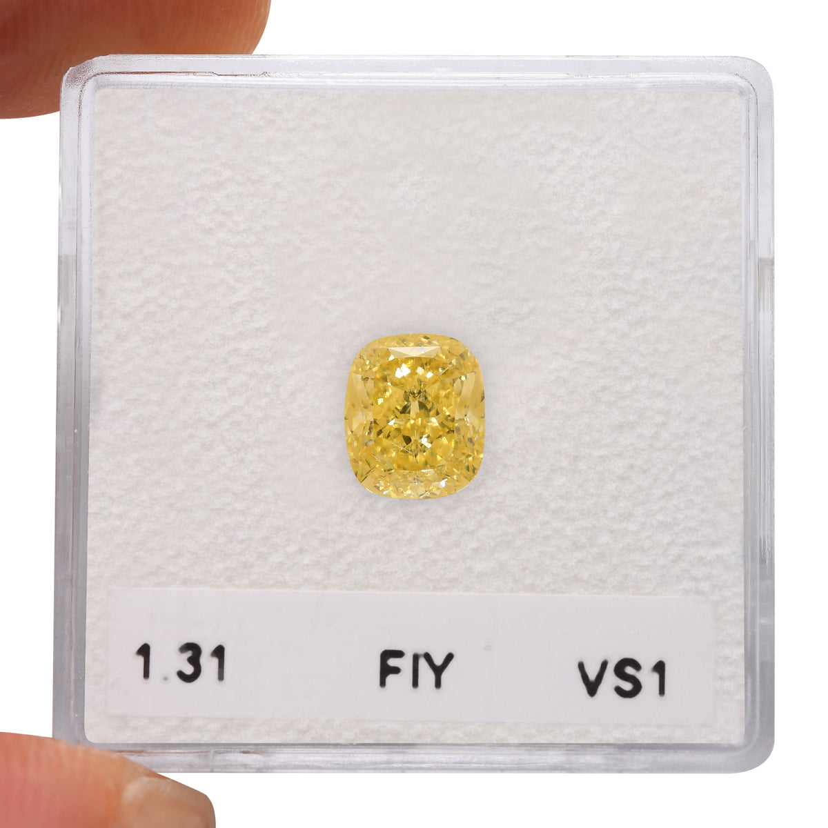 1.31 Carat Fancy Intense Yellow Cushion Diamond VS1 GIA