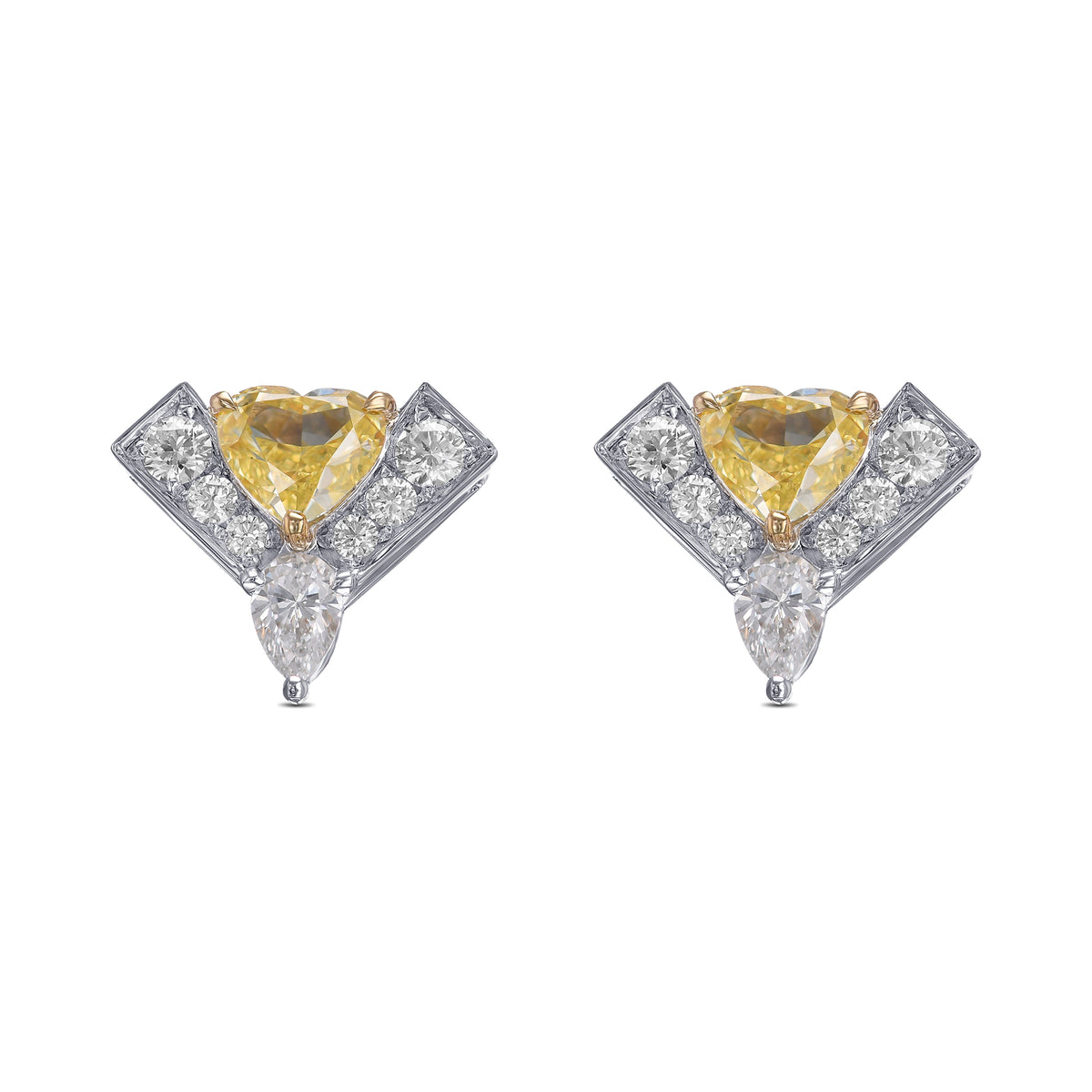 Fancy Intense Yellow Heart and White Diamond Leibish Logo Pave Earrings
