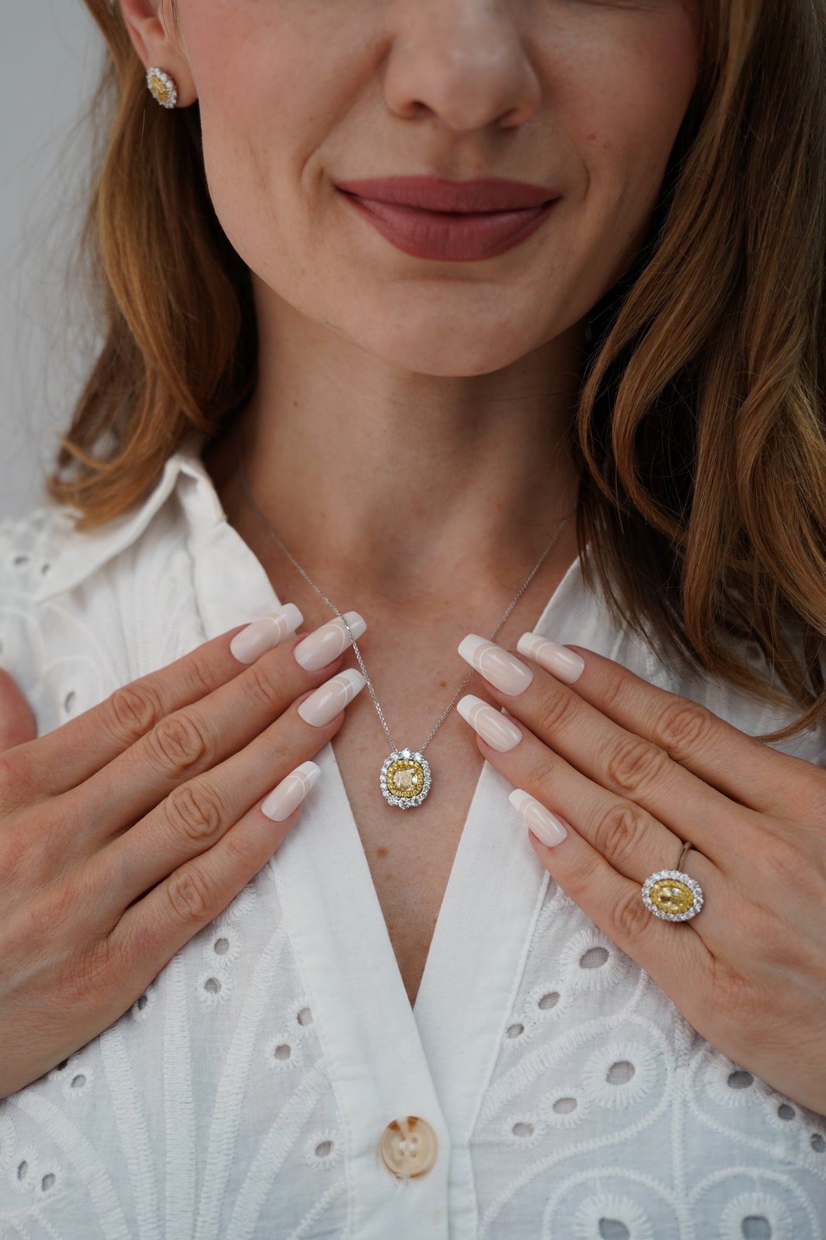 Fancy Intense Yellow Oval Double Halo Diamond Ring