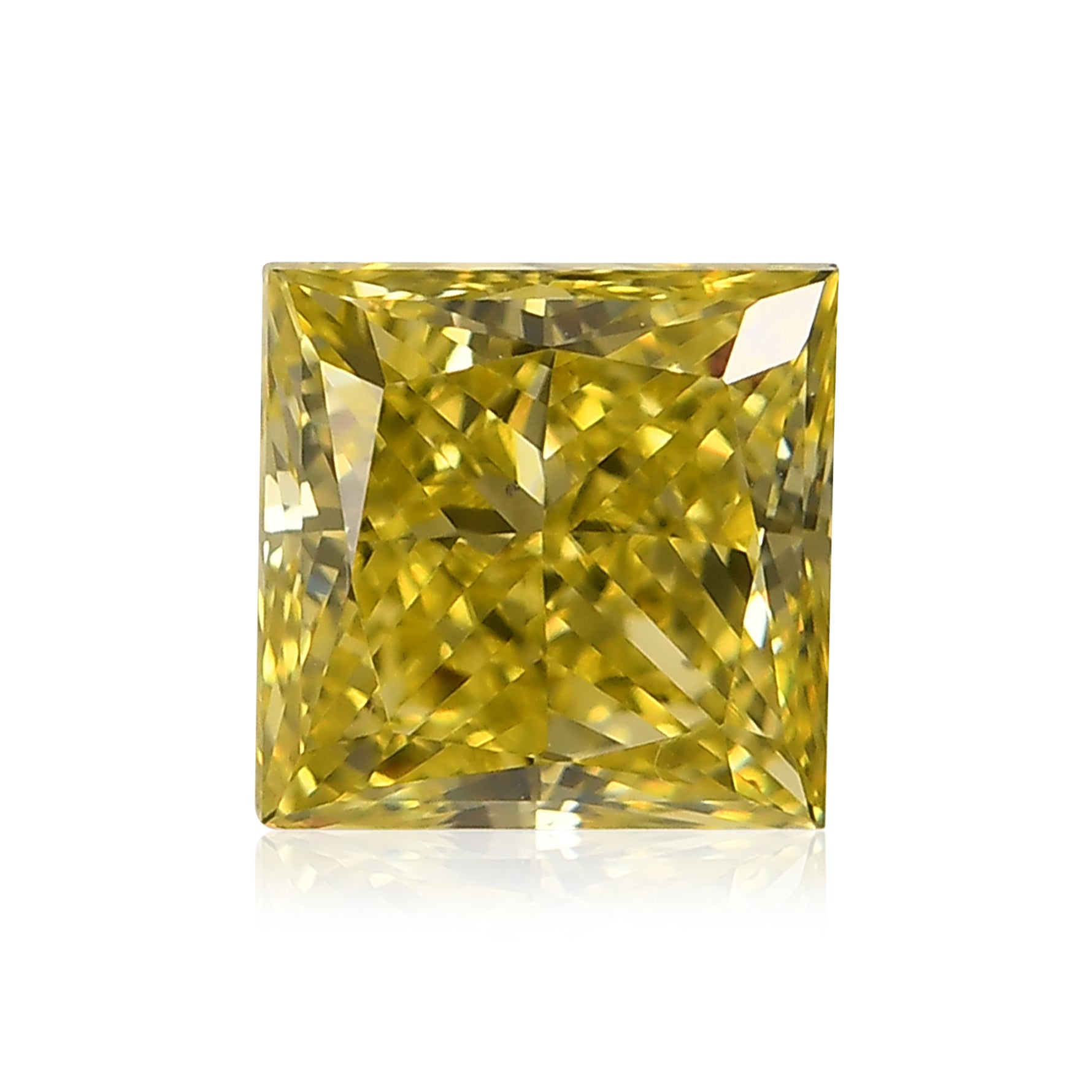 1.08 carat, Fancy Intense Yellow, Princess shape Diamond with VS2 clarity, graded by GIA. A splendid Yellow Diamond with a remarkable color tone. The stone has Good polish and Very Good symmetry.