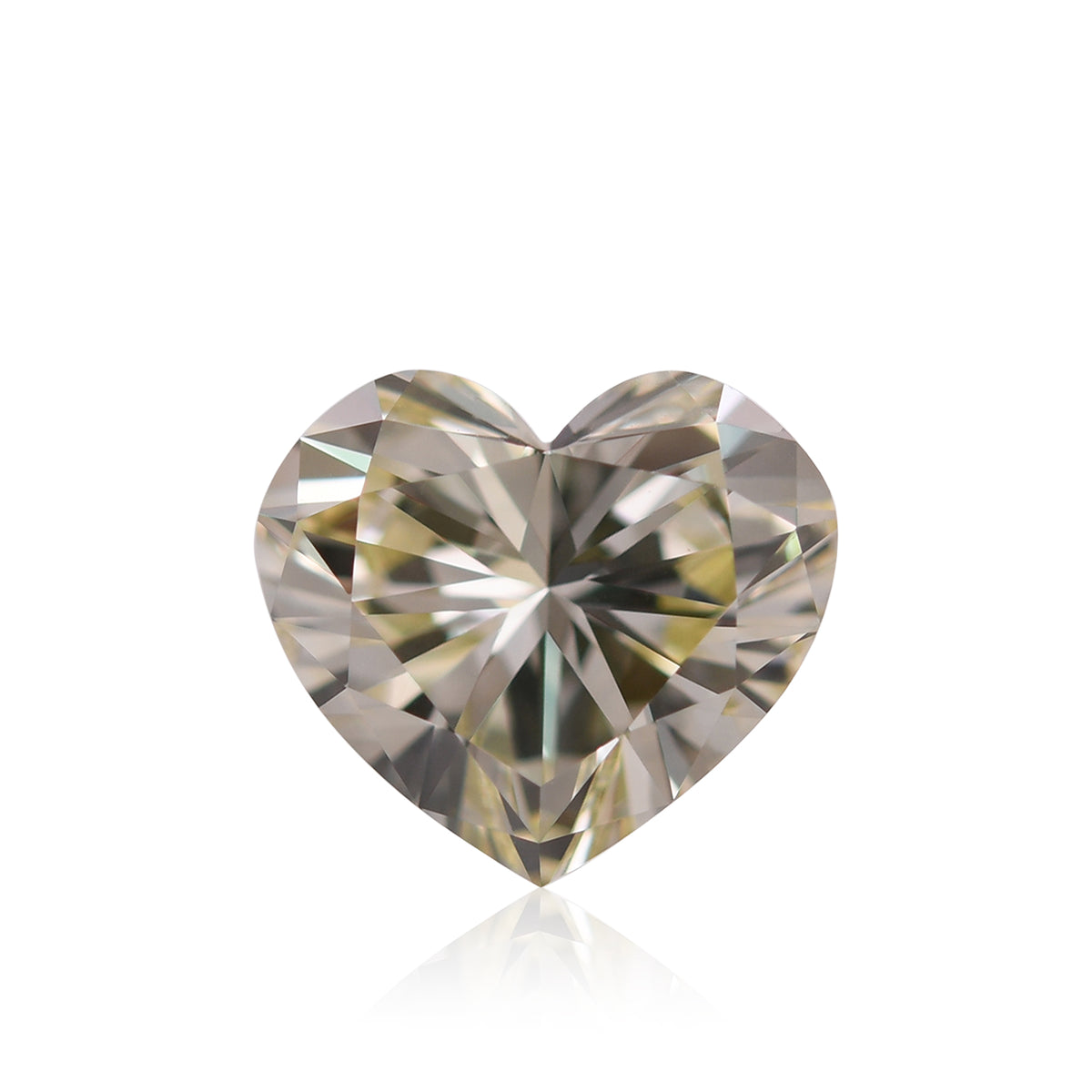 This 1.46 carat heart-shaped diamond features a rare Fancy Light Brownish Greenish Yellow chameleon diamond with an olive hue. Graded VVS1 by GIA, it boasts exceptional clarity, Very Good polish, and symmetry, making it a stunning and unique choice for discerning collectors. Chameleon diamonds briefly change color when heated or left in the dark.