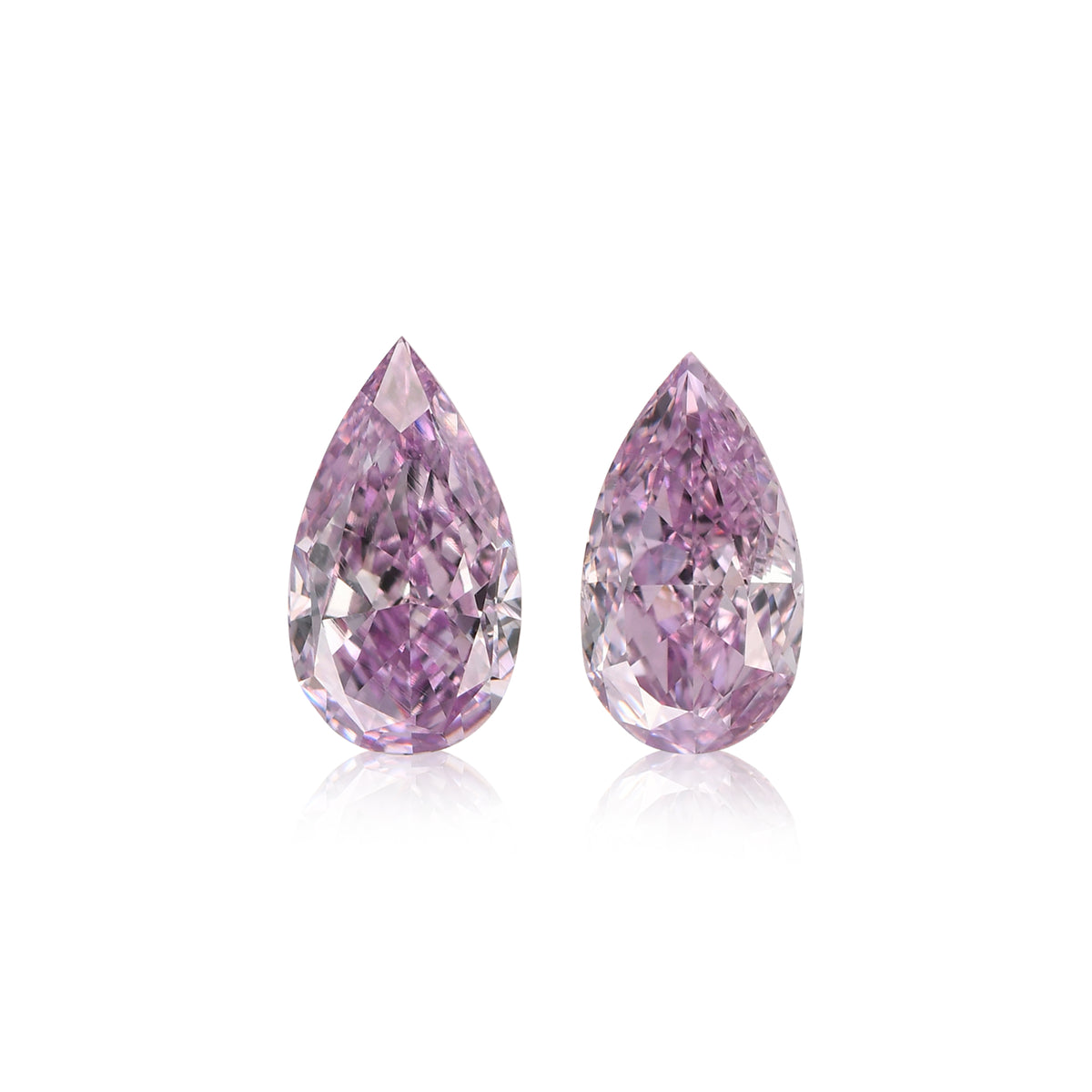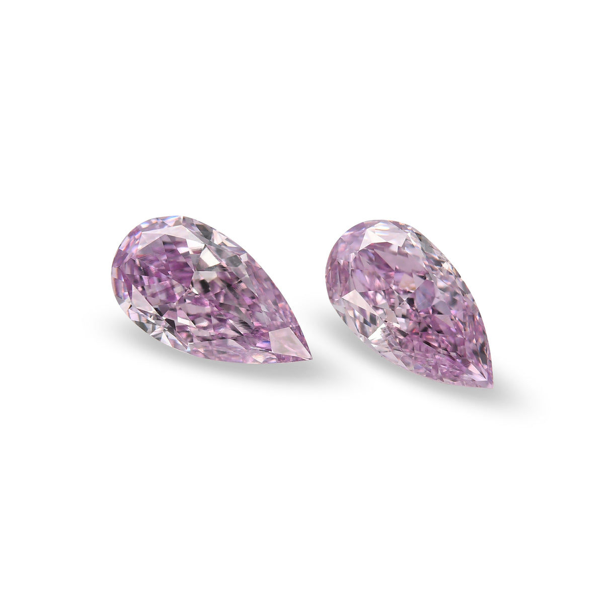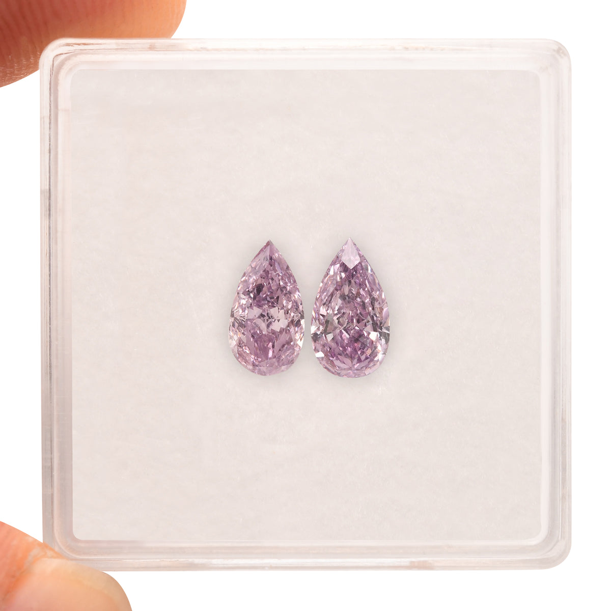 Grundpreis / proA fabulous pair of fancy pink purple, pear shape diamonds, total weight 1.00cts, with VS2 clarity, certified by GIA. The stones have a strong violet color face up and can be purchased as a loose pair or set as a pair of earrings in a Leibish setting style or custom design.