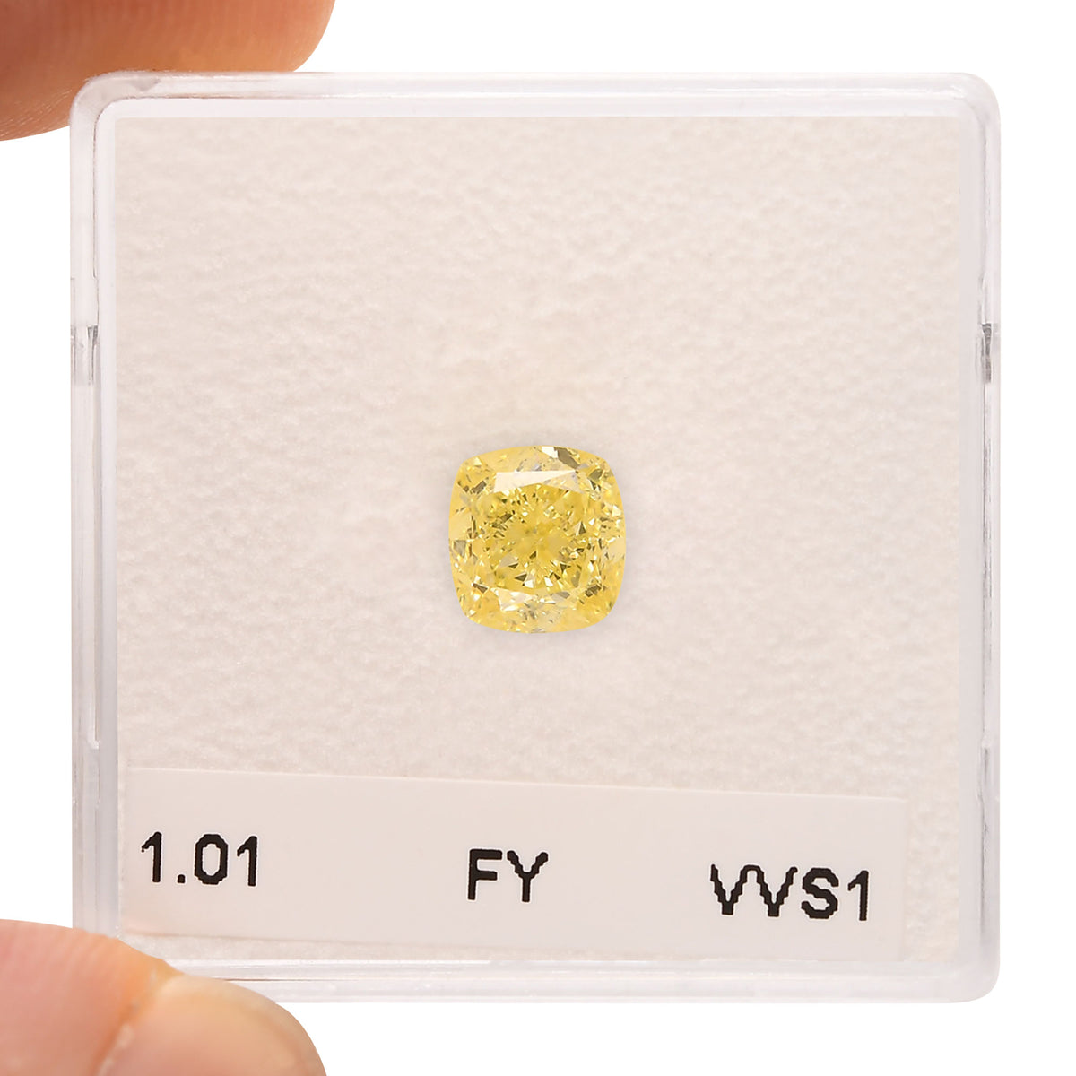 Grundpreis / pro1.01 carat, Fancy Yellow, Cushion shape Diamond with VVS1 clarity, graded by GIA. A delightful Yellow Diamond that is simply a terrific stone. The stone has Excellent polish and Very Good symmetry.