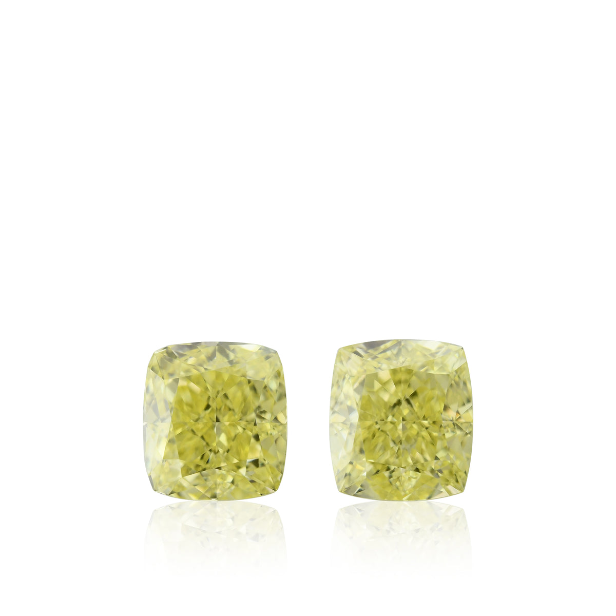 Grundpreis / proA great pair of fancy yellow, cushion diamonds, total weight 1.09cts, with VVS1 clarity, certified by GIA. The stones have a lively luster and can be purchased as a loose pair or set as a pair of earrings in a Leibish setting style or custom design.